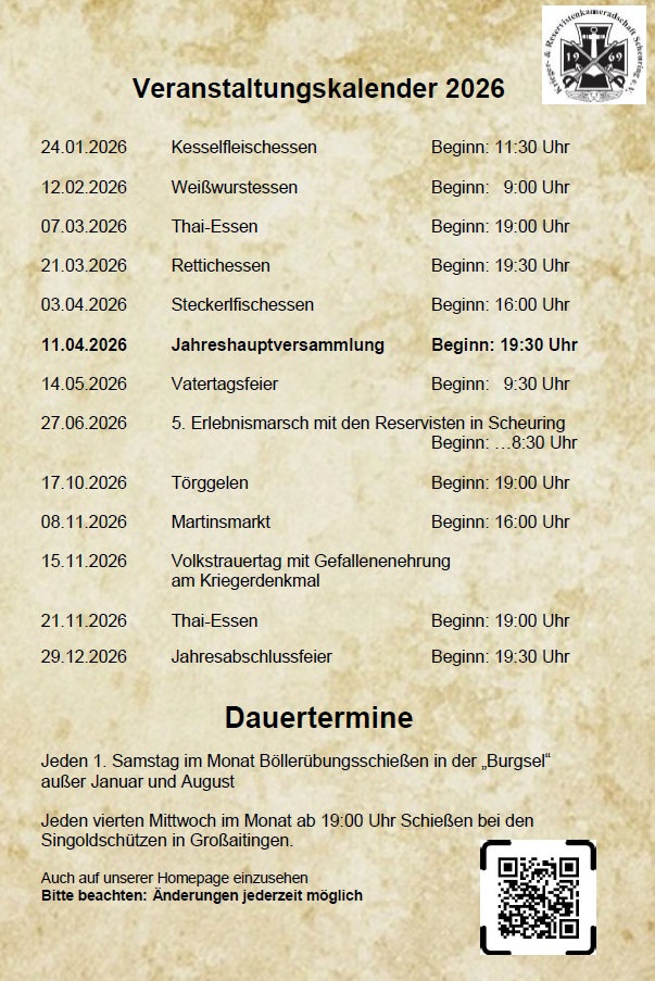 Alle Veranstaltungen werden auch regelmäßig im Gemeindeblatt der Gemeinde Scheuring veröffentlicht.